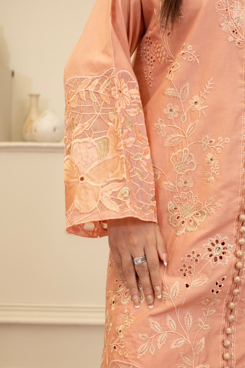 Be the first to review “Blush Peach Cambric Cotton Embroidered 3-Piece Suit”