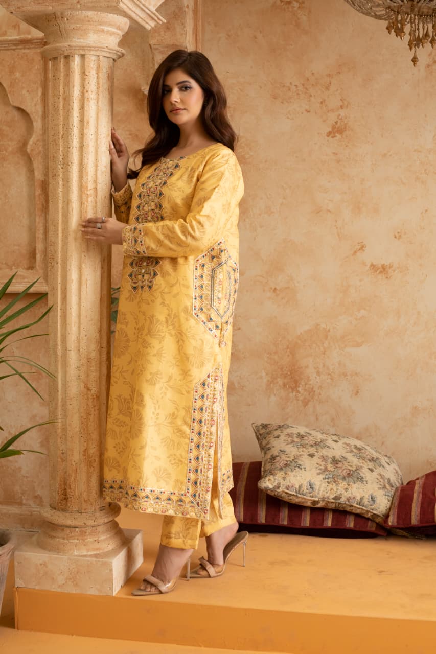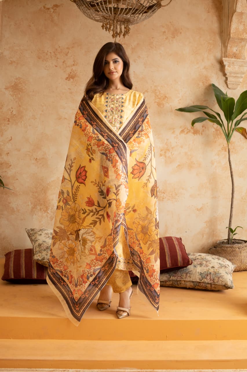 Brighten up your winter days with our Mustard Yellow Cotraya 3-Piece Ready-to-Wear Dress. Made from soft and warm cotraya fabric, this outfit combines comfort with sophistication. The rich mustard yellow shade adds a bold and trendy vibe, while elegant embroidery enhances its graceful look. Perfect for casual gatherings, winter outings, or festive wear — this dress keeps you cozy yet stylish all season long.