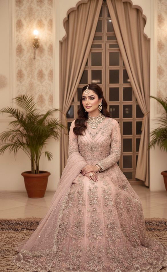 Crafted from premium fabric, this ensemble offers comfort with couture charm—because every bride deserves to sparkle with confidence and grace.