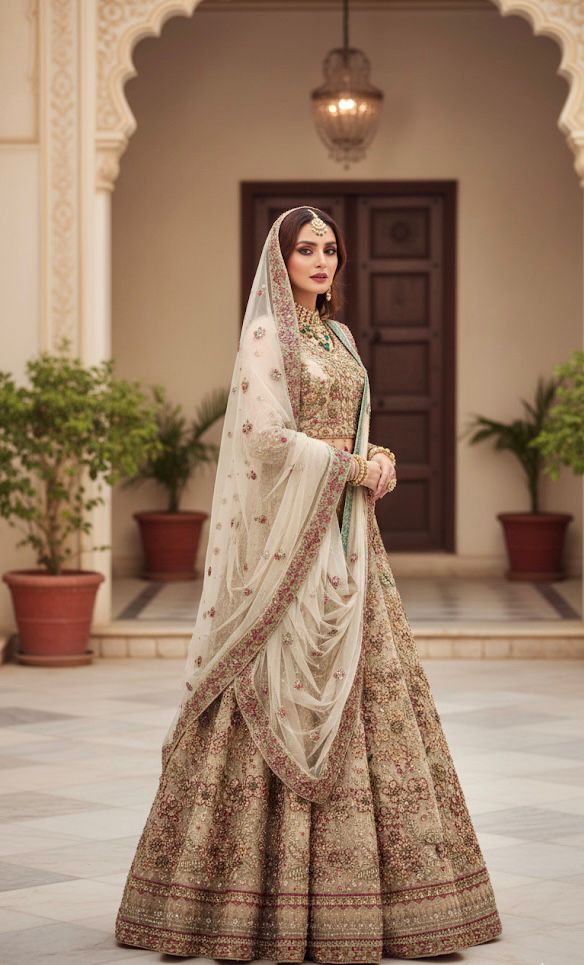The richly embroidered choli pairs beautifully with a flowing lehenga, creating a perfect balance of luxury and tradition. Each shimmer reflects fine craftsmanship, making it ideal for weddings, receptions, and festive celebrations.