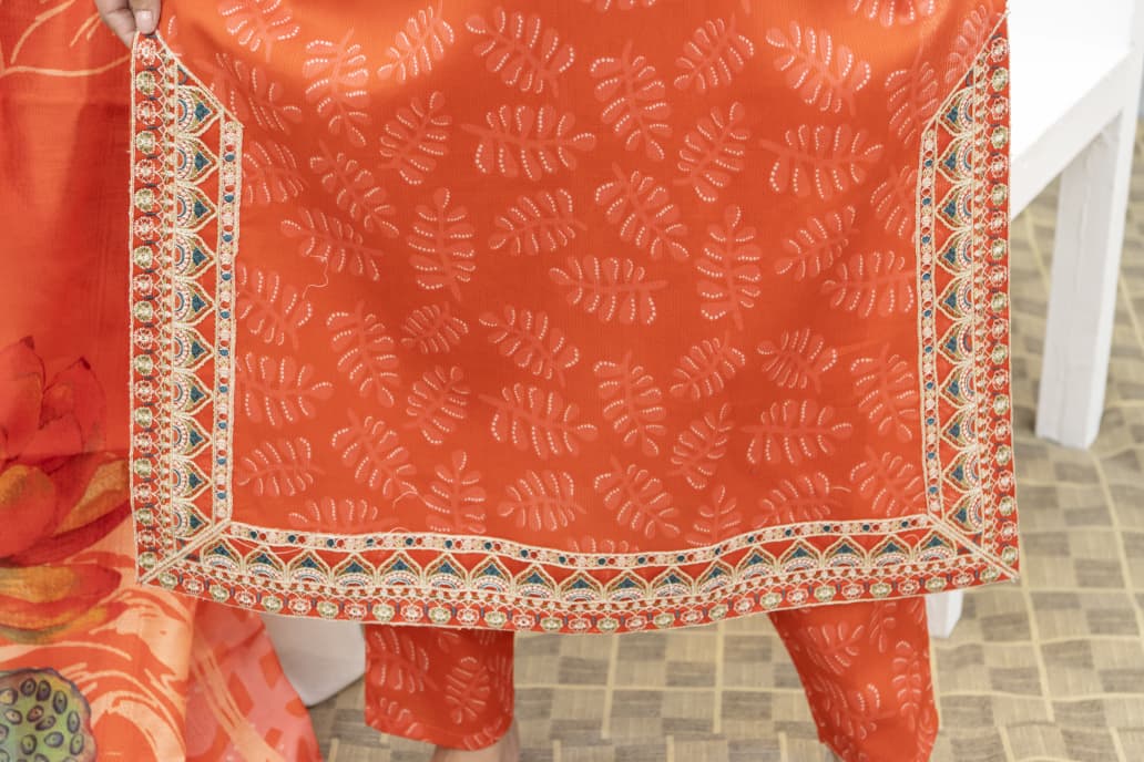 Orange Cambric Winter 3-Piece Embroidered Suit
