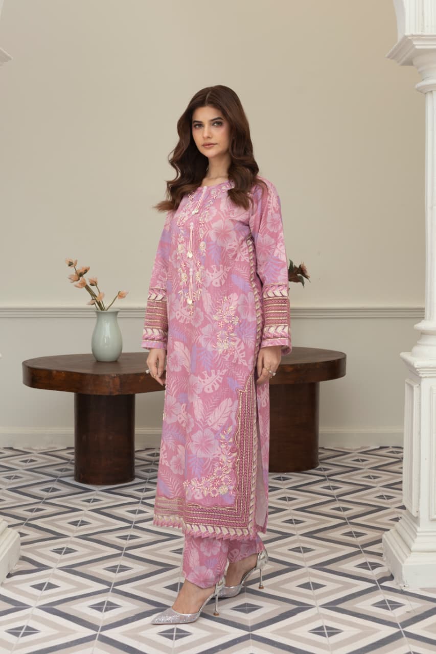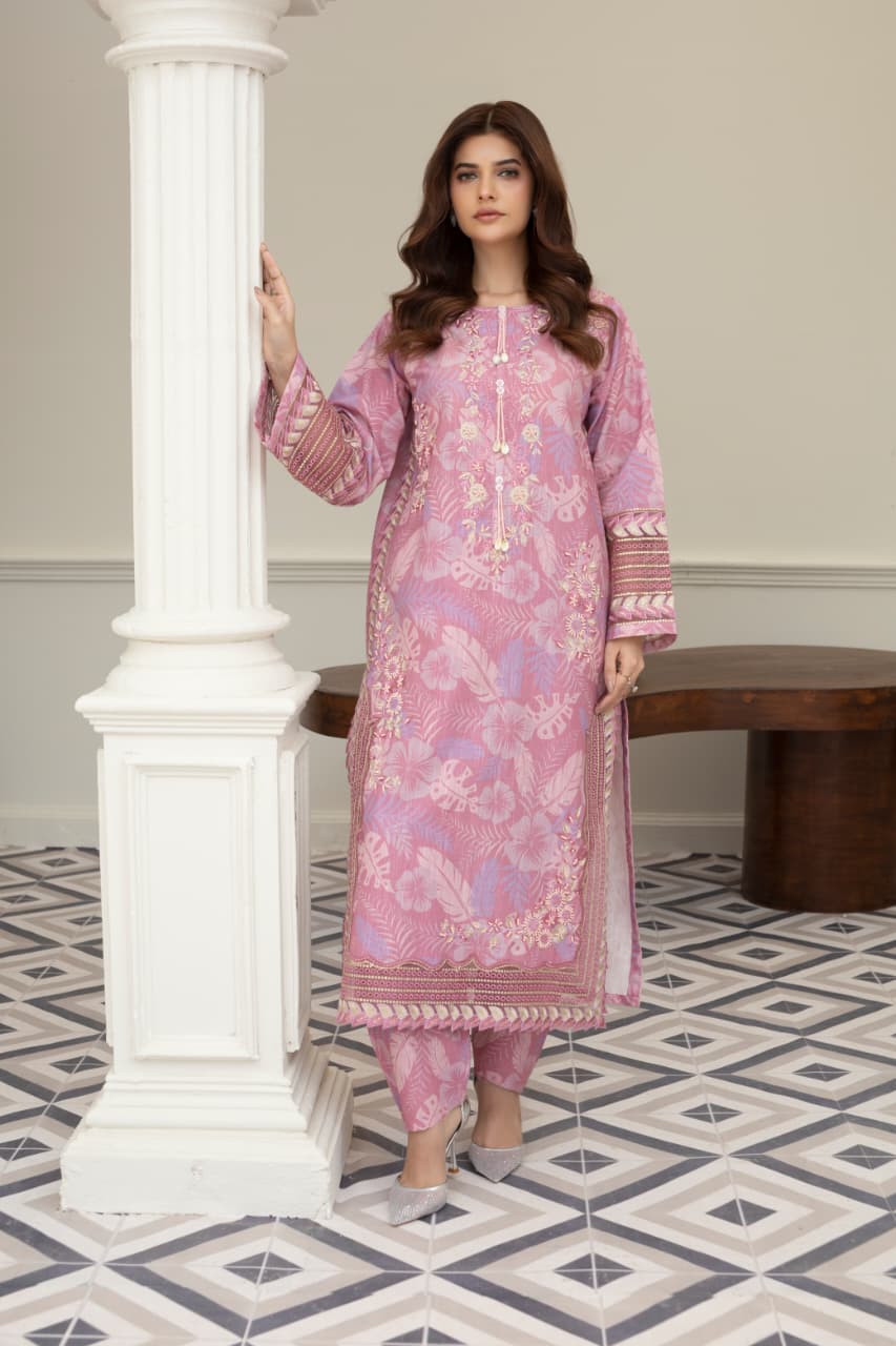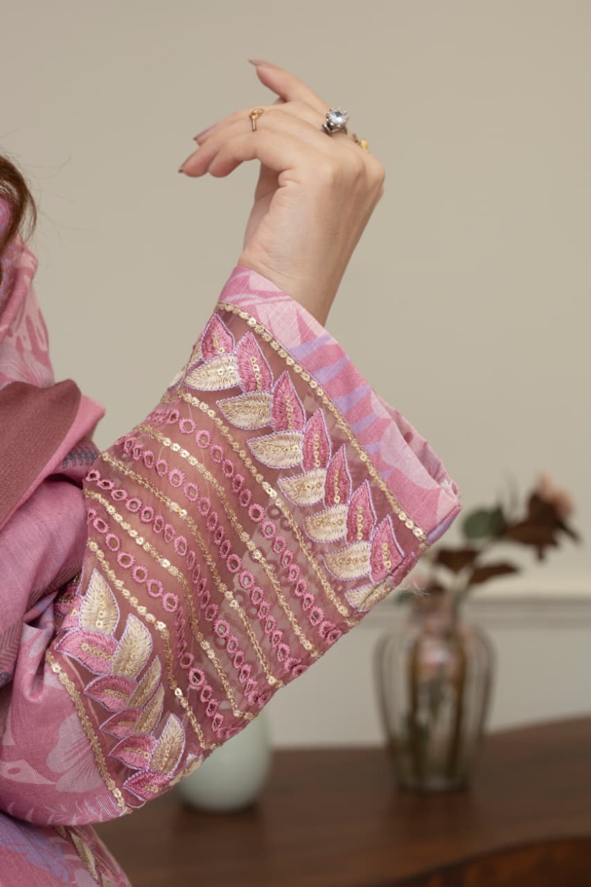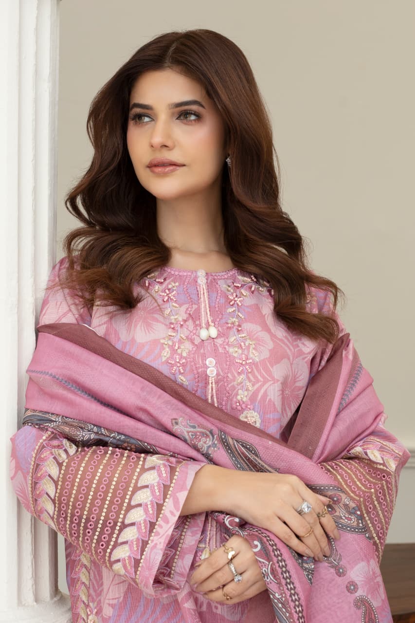 Rose Bloom Embroidered Cambric 3-Piece Suit, designed to add soft femininity and seasonal charm to your wardrobe. Crafted from high-quality winter cambric, this outfit brings together comfort, refinement, and a luxurious look, making it ideal for daytime winter events, casual gatherings, festive brunches, or everyday classy wear.